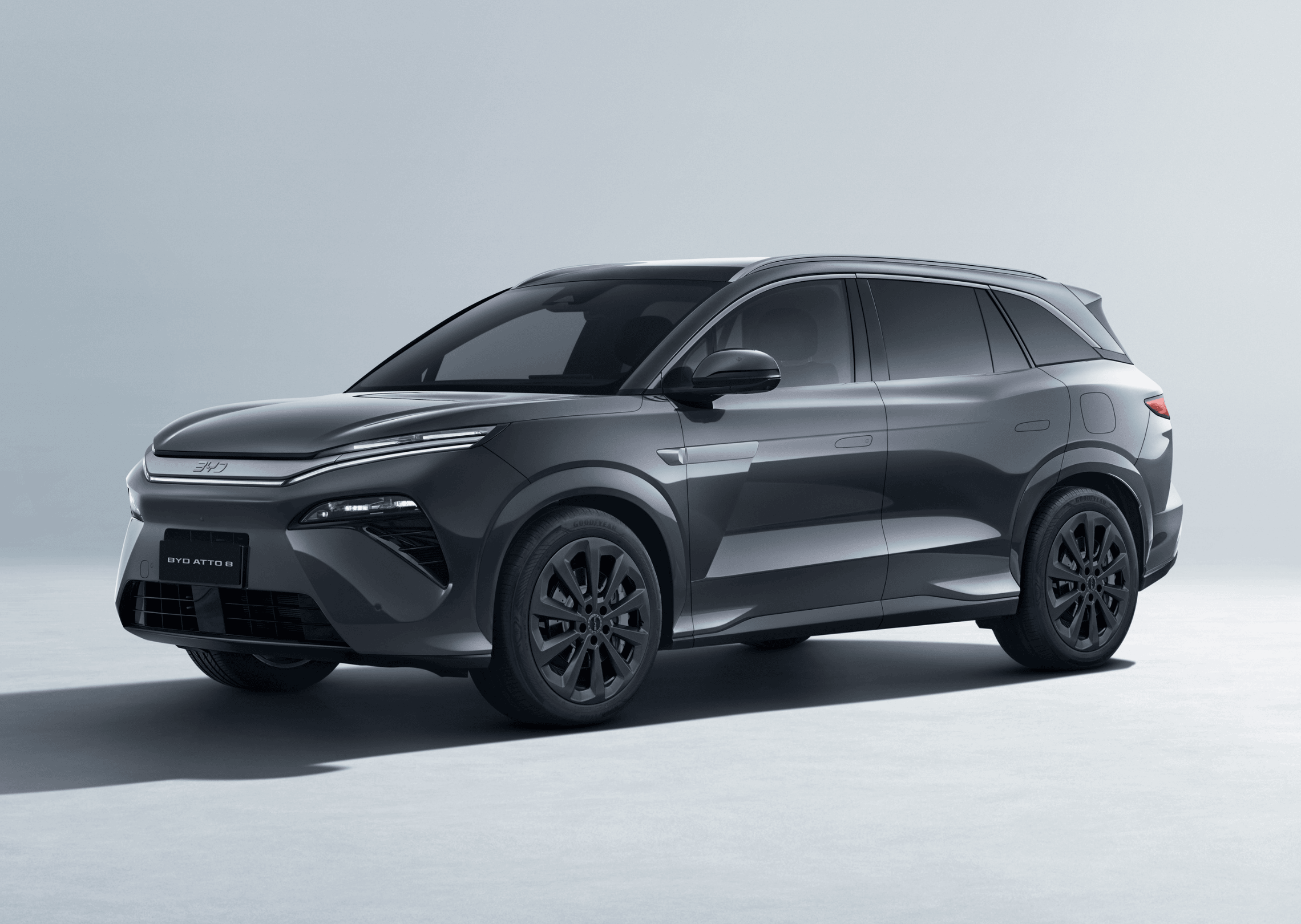 El nuevo BYD ATTO 8 Híbrido enchufable presenta un diseño exterior de gran presencia, donde cada trazo fue pensado para proyectar equilibrio y carácter. Su frontal expresivo, ópticas estilizadas y superficies esculpidas construyen una imagen sólida y distintiva. La integración de elementos aerodinámicos, junto a su porte robusto y detalles cuidadosamente resueltos, definen un SUV que impone estilo propio.